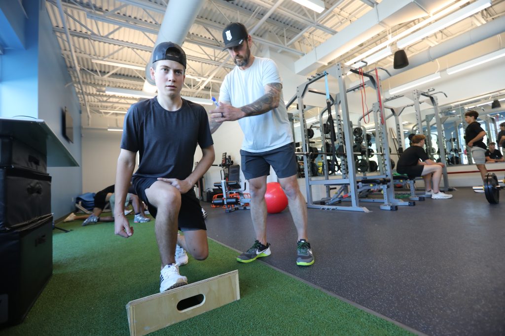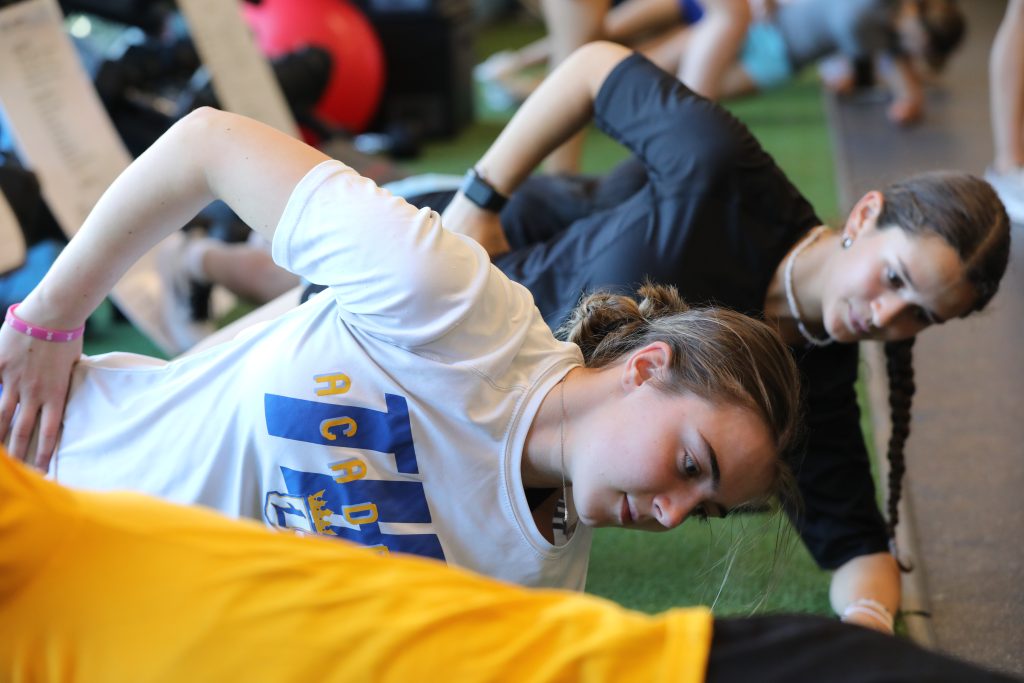 Our on-campus gym is a space where our athletes learn how to train the right way. Every session is supervised by our full-time, strength and conditioning coach who provides hands-on instruction, makes corrections, and explains the “why” behind each movement. That means our players aren’t just working hard, they’re training smart.
